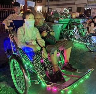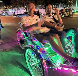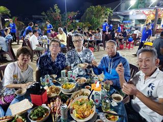 ・日本語学校長推薦の郊外レストランへシクロ(3輪自転車タクシー)で移動し新鮮な魚介を堪能